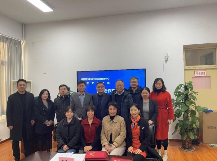 为推进社会工作新专业建设步伐,11月24日下午,我校经济管理学院邀请陕西蓝天社会工作发展服务中心来校签订校企合作协议、互聘导师。经济管理学院院长闫荣国、党总支书记陈沛热情接待来访企业一行5人。组织员张军学、...