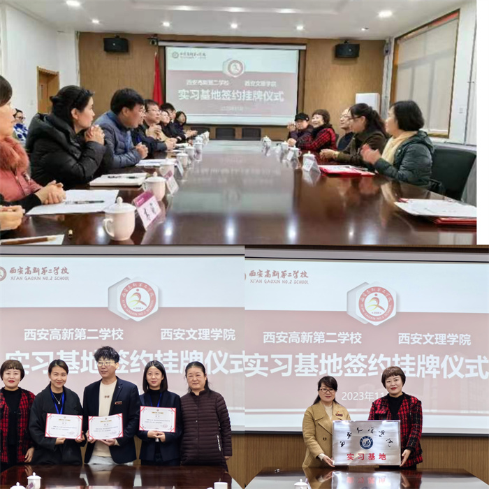 11月17日上午,音乐学院与西安市高新第二学校举行教育实习基地签约授牌仪式,音乐学院副院长郭瑞玺及教育实习负责老师崔丹副教授参加了仪式。西安高新第二学校副校长刘建虎、副校长史美霞、总支副书记王增明、艺术教...