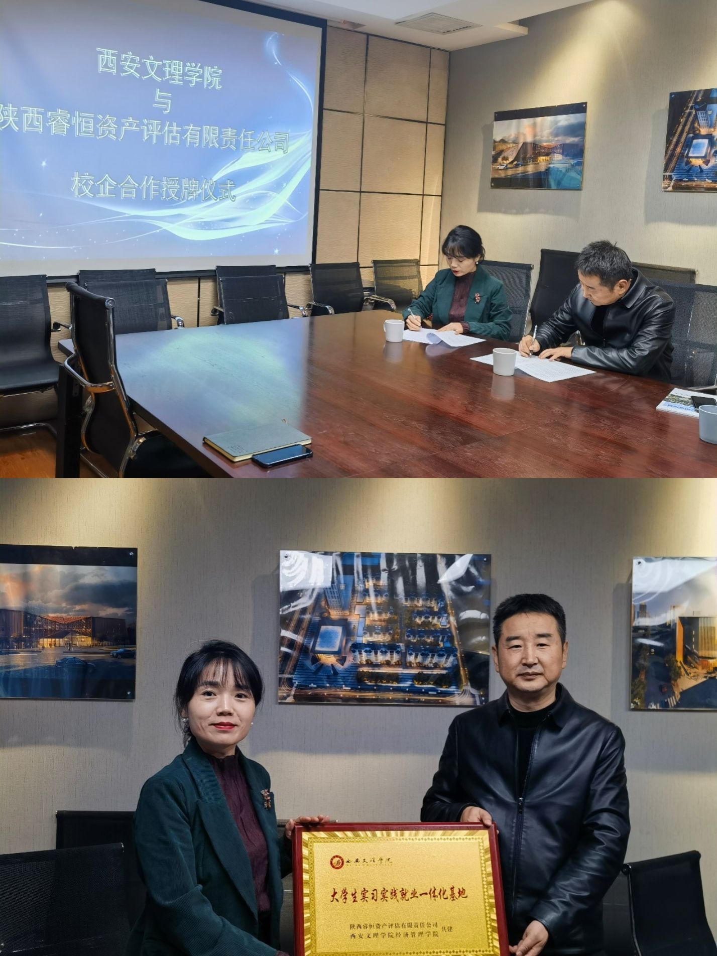 11月8日下午,经济管理学院副院长董冠华一行赴陕西睿恒资产评估有限公司访企拓岗,举行大学生实习实践就业一体化基地签约及校企合作授牌仪式,同时看望正在公司实习的学生。陕西睿恒资产评估有限公司董事长赵琦接待。签约仪式上,董冠华与赵琦在前期沟通洽谈基础上对学生的专业规划、人才建设等方面进行了更深入且富有成效的交流。赵琦介绍了学生目前在公司的实习情况,对实习学生的工作表现给予肯定和赞许,表示希望可以接纳更多优秀学生来公司实习并实现就业。...