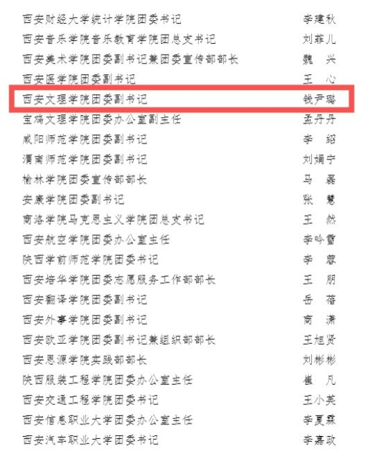 近日,共青团陕西省委、中共陕西省委教育工委联合印发《关于2023年度陕西高校共青团工作述职评议结果的通报》,我校荣获“大学生社会实践与志愿服务工作先进单位”;校党委书记王育选荣获“支持共青团工作好书记”;...
