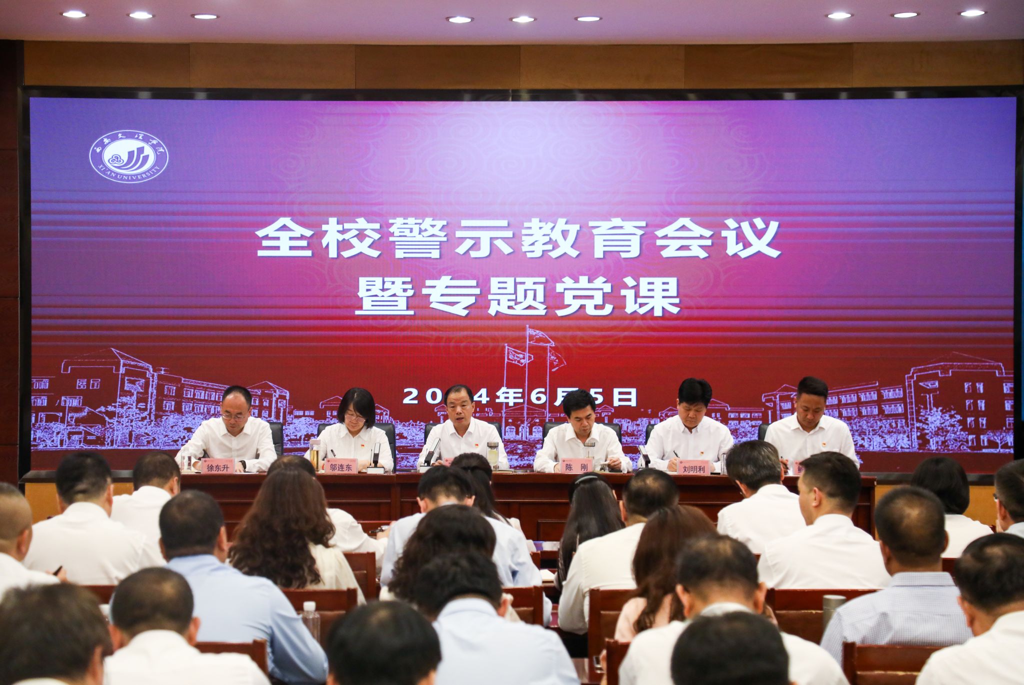 6月5日,学校警示教育会议召开。会议深入学习贯彻习近平总书记关于全面加强党的纪律建设的重要论述,认真落实党中央关于开展党纪学习教育的决策部署和省、市委警示教育会议要求,引导全校党员干部进一步强化纪律意识,不断巩固发展风清气正的政治生态,为加快“最懂西安”高水平应用型城市大学建设提供坚强保障。党委书记王育选讲话并作专题党课辅导。全体在校校领导、处级干部参加会议。王育选指出,开展党纪学习教育,是以习近平同志为核心的党中央作出的重大部署,...