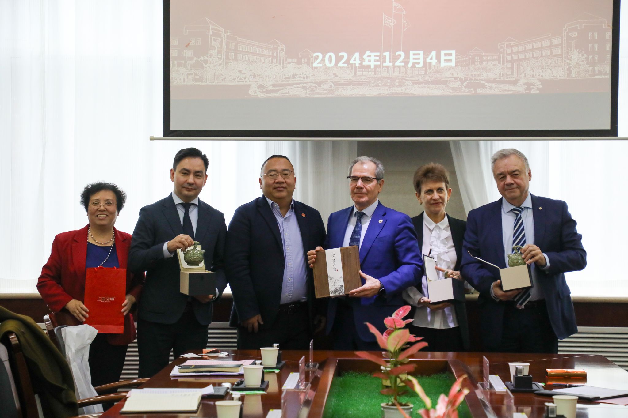12月4日上午,俄罗斯鞑靼斯坦共和国元首助理阿尔伯特·哈利索维奇、俄罗斯金砖国家战略项目国际联盟副主席王宝爱等一行6人来访我校。学校副校长任晖出席会见,相关部门负责人参加座谈。会议由国际交流处处长俞华主持。会上,任晖对俄罗斯代表团的到来表示热烈欢迎,并介绍了学校的基本情况和国际化教育成果。他指出,中俄两国作为全面战略协作伙伴,在庆祝中俄建交75周年之际,俄罗斯代表团的访问具有重要意义,不仅见证了中俄友谊,...