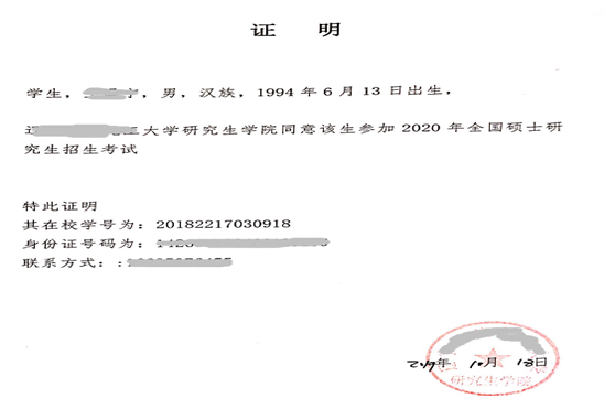 4.同意报考证明。在校研究生报考须提交所在培养单位出具的校级研究生学籍管理部门盖章的“同意报考”的证明,方能进行网上确认。