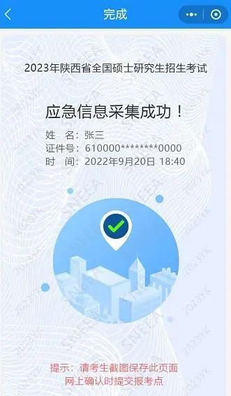 (1)为了有效应对突发疫情,需补充采集考生应急信息。请考生于10月28日至11月5日登录“陕西考试招生”小程序(填报方式见附件2)填报个人应急信息。应急信息填报成功后将“应急信息采集成功”界面截图并保存,网上确认时提交。