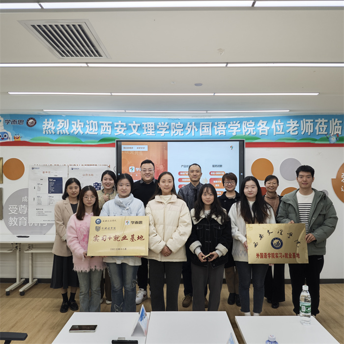 12月7日下午,外国语学院党总支书记王一、党总支副书记李巧玲、英语系副主任薛维及4名在校学生一行7人赴学而思培训中心开展实习+就业校企合作专项活动。学而思西安基地负责人丁嘉艺、人力资源负责人刘倩、辅导基地负责人王泽宇、西安校园招聘主管何家乐、学而思就业校友代表赵研茹和吕兴光参加了本次活动。