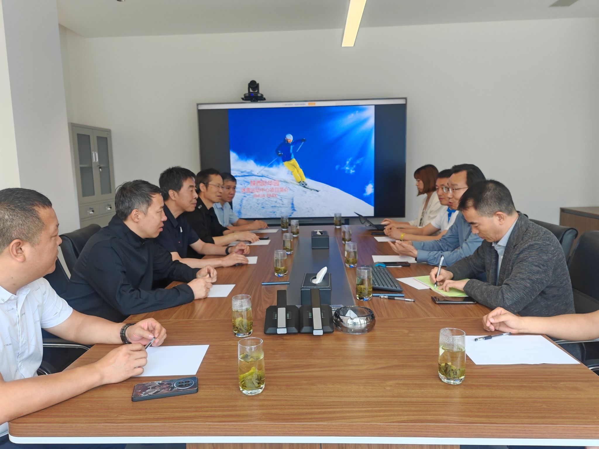 参观结束后,双方在际华冰雪·西安冰雪中心举行了座谈会。会上,际华冰雪中心负责人侯增良详细介绍了公司的发展历程、业务范围及未来规划。院长查毅介绍了体育学院的专业设置、人才培养模式及对外服务等情况,党总支书记马修海介绍了学生规模、学业特点、职业意向去向及就业现实状况。在座谈会上,双方约定将在未来的合作中,充分发挥各自优势,共同为学生提供实习和就业机会,推动冰雪运动人才的培养和输送。双方就如何加强校企合作、共建实习实训基地、提供就业岗位等方面进行了深入探讨,并初步达成合作意向。