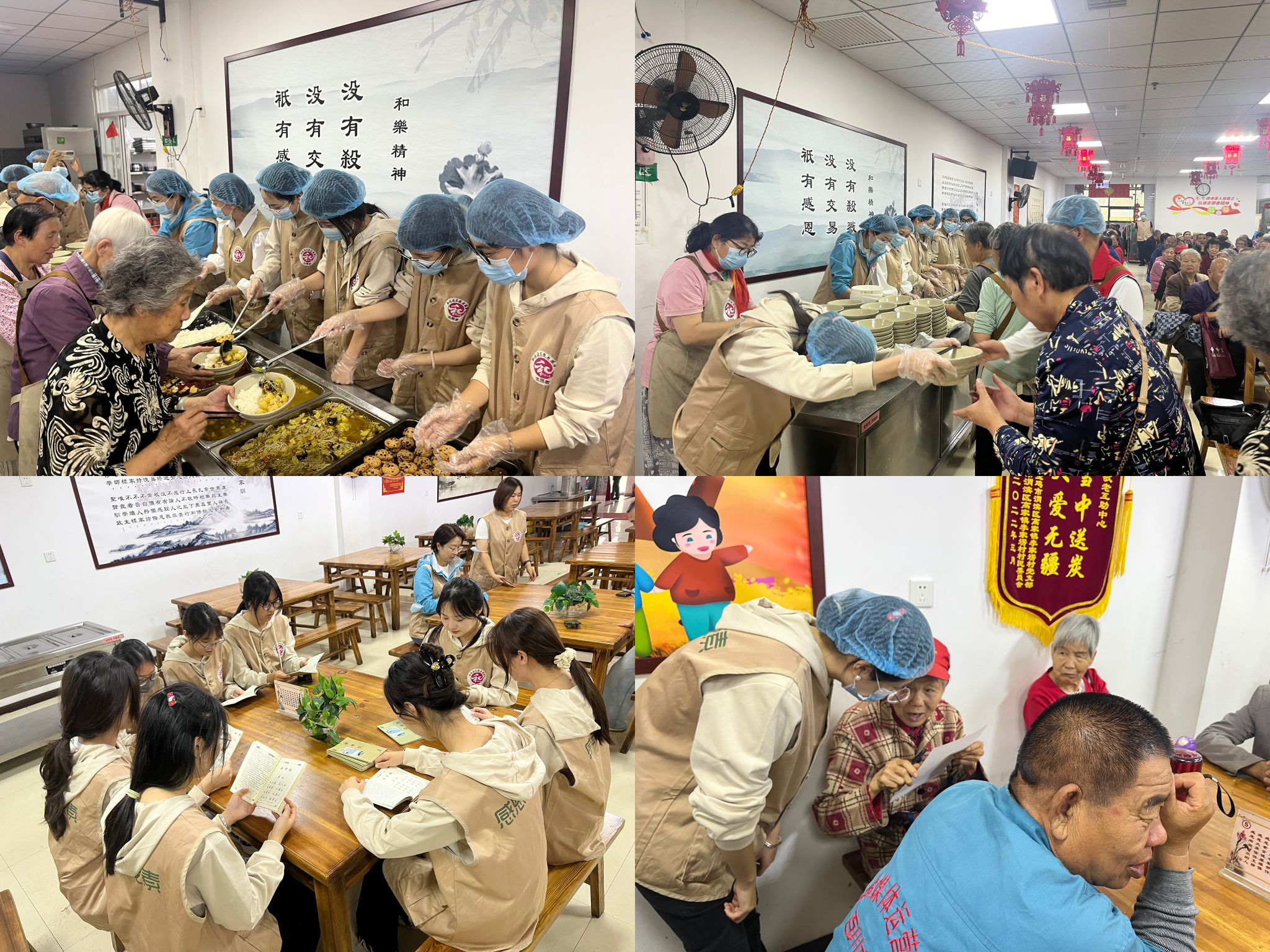 10月12日,文学院重阳节尊老敬老志愿服务队来到西安市未央区和乐社区敬老互助中心,开展“爱心传递,情暖人间”志愿活动。在活动现场,志愿者同学们热情积极全程投入,活动伊始,同学们跟随现场的老年群众及工作人员一起重温了《弟子规》的内容,进一步感悟我国传统美德的文化内核。随后,在公益素食餐厅里,他们为老人们提供了一系列贴心的服务,从登记资料、呈碗到递送饭菜、发放爱心马甲,全面周到安心,使老人们深刻感受到来自社会青年的温暖和关怀。