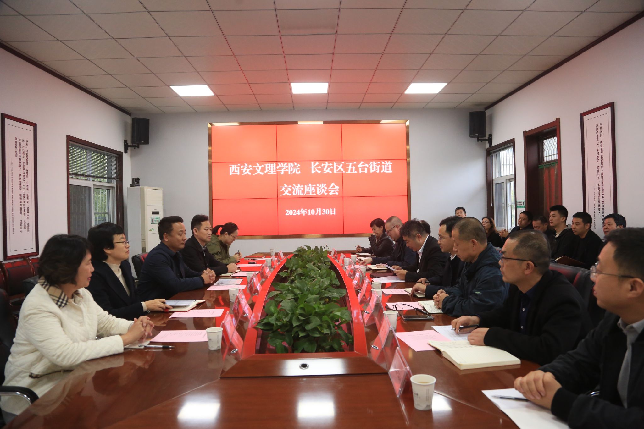 10月30日下午,校党委委员、校务委员鲍锋带队深入基层一线,赴长安区五台街道办事处对接校地合作事宜,详细了解基层对高校实际需求,提供学校服务基层实践路径,进一步深化“最懂西安”办学理念。五台街办党工委书记康鑫、街办主任邢蔚及街办全体领导班子成员,当地村干部、“两代表一委员”和主要企业负责人参加座谈。