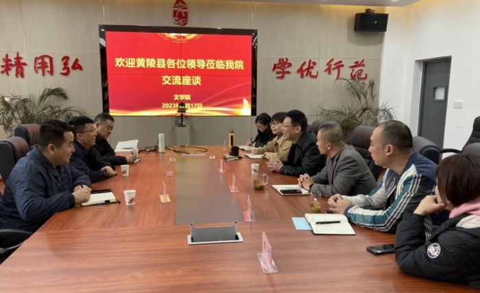 在文学院交流座谈时,院长郝延军对黄陵县负责人一行的来访表示欢迎,表示希望与黄陵县在文化咨询、文化教育、文化研究、文化项目等方面展开进一步的交流合作,尽快达成战略协议。副院长马娜邀请黄陵县负责人观看了学院宣传片,介绍了学院的教育教学发展情况、专业特色、学科建设等情况。学院党总支书记吴勃进一步指出学院在影视制作、创意写作等方面具备的突出优势。