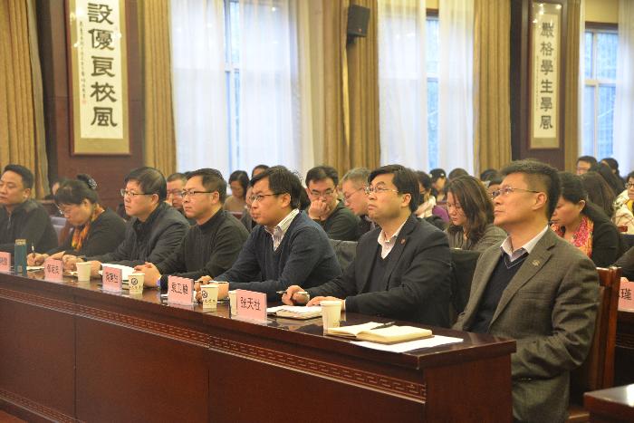 为探索课堂教学改革新形式,促进人才培养质量提升,12月28日上午,学校在办公楼一楼会议室举办“对分课堂教学改革报告会”,邀请复旦大学张学新教授作主题报告。我校副书记、副校长李忠良、各学院院长、教学副院长、教研室主任、教师代表、教务处全体干部共140余人参加报告会。副书记、副校长李忠良主持会议。