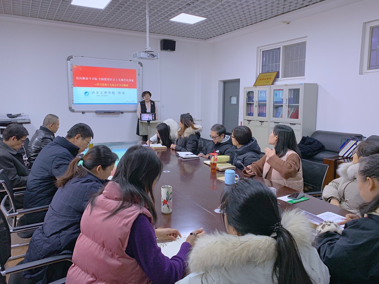为深刻领会十九届五中全会精神,准确把握精神实质,12月31日下午,文学院党总支邀请学校“十九届五中全会精神”宣讲团成员、马克思主义学院舒荣教授为全院教职工作了题为《迈向新奋斗目标 全面建设社会主义现代化国家》的专题讲座。学院领导班子、各党支部书记、行政教辅人员现场学习,专任教师通过视频会议聆听了讲座。会议由党总支副书记李莎莎主持。