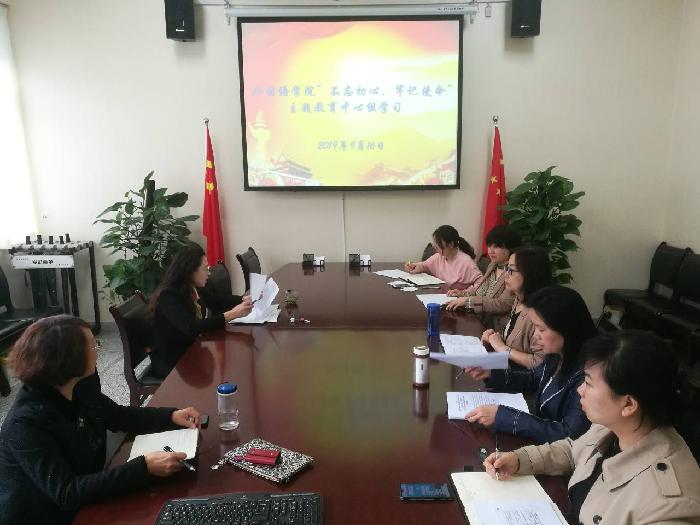 9月18日上午,外国语学院党总支开展了 “不忘初心、牢记使命”主题教育集中学习研讨。主要围绕《习近平关于“不忘初心,牢记使命”重要论述选编》、《中国共产党党内重要法规汇编》及省市下发的有关党的组织建设等文件进行学习,就“党风廉政建设与转作风”专题进行交流研讨。学校主题教育督导组成员,化工学院党总支组织员刘长明、学院领导班子成员、党总支全体委员、教工及学生党支部书记参加了会议,会议由党总支书记王克盈主持。