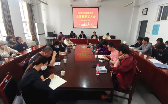 4月12日,历史文化旅游学院召开全院教职工大会,安排部署近期工作。学院领导班子、全院教职工参加,会议由学院党总支书记刘倩倩主持。
