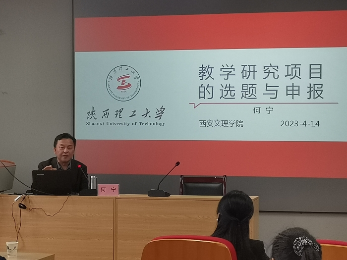讲座邀请到陕西理工大学原校长,陕西普通高校教学名师何宁教授主讲。师范学院与外国语学院近百余名教师线下线上聆听,师范学院长曹莹主持讲座。