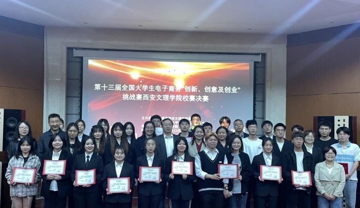 4月12日下午,经济管理学院承办的第十三届全国大学生电子商务“创新、创意及创业”挑战赛(以下简称“三创赛”)西安九游老哥J9俱乐部官网学院校赛决赛在图书馆报告厅举行。来自全校的10支团队参加决赛路演及答辩。大赛由“三创赛”省赛资深评委丁阳,我校学生职业生涯教育中心主任冯宁,经济管理学院院长刘鸿明,校团委副书记钱尹璐、创新创业教育中心张国良担任评委。我校创新创业教育中心副主任李浩,机械与材料工程学院副院长边培莹,经济管理学院班子成员,教师代表、学生代表现场观赛。
