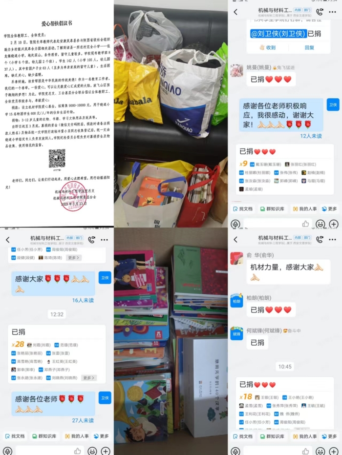 在第60个“学雷锋纪念日”前后,机械与材料工程学院党总支在全体教职工中组织开展了“学习雷锋精神 关爱留守儿童”主题活动,为安康市岚皋县佐龙镇晓道小学生活困难留守儿童献出一份爱心。