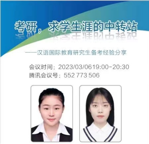 文学院汉语国际教育专业研究生面试、调剂经验分享会于3月6日晚线上召开。本次分享会邀请了学院汉语国际教育专业2015级毕业生、现陕西师范大学汉语国际教育专业在读硕士研究生毛怡蕊和2018级毕业生、现兰州交通大学汉语国际教育专业在读硕士研究生张婳做经验分享。汉语国际教育专业学生及其他专业考研学生参加了本次分享会。会议由专业教师秦岭、张悦主持。