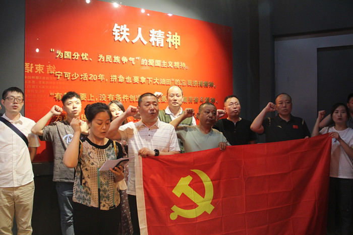 全体党员干部参观了铁人王进喜纪念馆。通过听取讲解,观看实物和资料图片,详细了解了铁人王进喜的生平事迹。大家都被铁人“为国分忧、为民族争气”的爱国主义精神、“宁可少活20年,拼命也要拿下大油田”的忘我拼搏精神、“有条件要上,没有条件创造条件也要上”的艰苦奋斗精神、“干工作要经得起子孙万代检查”“为革命练一身硬功夫、真本事”的科学求实精神、“甘愿为党和人民当一辈子老黄牛”的埋头苦干的奉献精神深深感染。