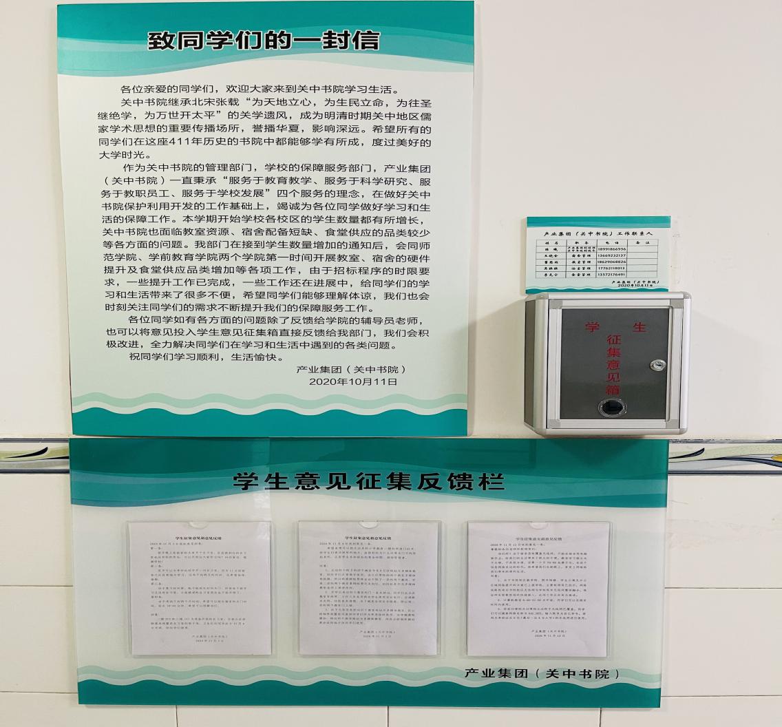 党史学习教育启动以来,产业集团将党史学习教育和中心工作相结合,以“我为群众办实事”为目标,不断提升为师生服务、为师生办事的实效,各项工作扎实开展。一是挖掘梳理学生急难愁盼问题。建立书院校区学生沟通群,学生公寓设意见箱,成立监督岗,畅通沟通渠道,对学生反映的各类事项第一时间解决。在酷暑到来前,对学生宿舍空调、风扇逐一排查维修更换,调整学生洗浴时间,延长用餐时间。二是提高书院校区教学保障能力。和学院沟通制定书院校区教室、实训室、餐厅、公寓、图书馆、校园网络等基础设施改造提升方案,各改造项目有序推进,确保下学期开学投入使用。三是发挥关中书院社会服务职能。承办陕西省社科院、西安市科技局、南院门街道办等多家单位传统文化体验活动,让书院文化、关学精神发扬光大。四是提高产业集团服务师生水平。定制西安九游老哥J9俱乐部官网学院、关中书院品牌苏打水在本学期毕业典礼时免费向毕业生及家长提供,增加毕业生幸福感。集团所属重德物业承接太白校区物业服务外包项目,下大力气整治家属区环境卫生、停车秩序,为教职工营造了安全和谐的生活环境。