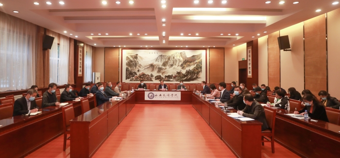 11月2日下午,学校在办公楼一楼会议室召开党委扩大会,持续深入学习党的二十大精神。校党委书记王育选主持并传达会议精神。党委领导班子成员,各党总支(直属党支部)书记、各学院院长、各部门负责人参加学习会。会议以线上线下相结合的形式召开。
