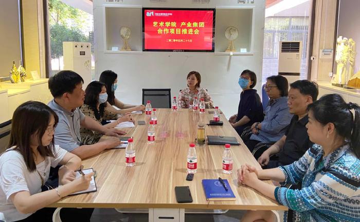 田军对新业态环境下学院产学研协同发力和资源优势协同发展的提出了构想,希望学院与产业集团从文创产品研发、原创音乐制作、贫困生原创美术设计作品、品牌赛事、展演等多方面入手,推进学校文化品牌建设,并与产业集团共享资源,加强沟通与交流,逐步深化双方合作,促进实体项目尽快落地。