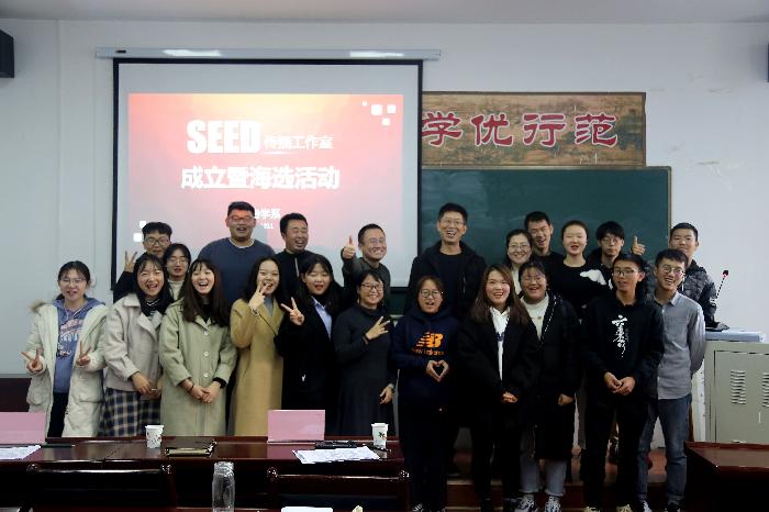 12月11日上午,文学院广告学系举行SEED传播工作室成立仪式暨海选活动。文学院院长郝延军、西安思度科技有限公司影视部技术总监,广告学系系主任郑玲玲、广告学专业教师李曜良、岳晨以及来自文学院2018级和2019级志愿加入工作室的学生共同参与了此次的活动。活动由岳晨主持。