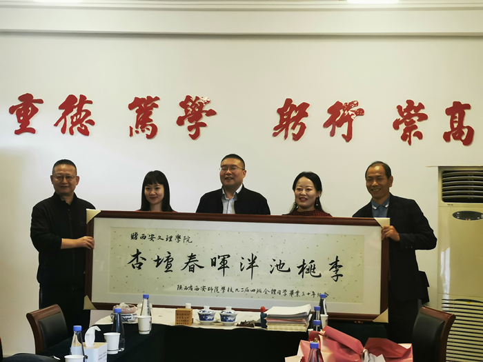 9月24日上午,我校师范92届校友毕业30周年重返母校书院校区,并向母校捐赠书法作品。招生就业处副处长铁煜、校友办副主任秦晓雅,我校音乐学院系主任、96级毕业生郭瑞玺接待校友并参加座谈。座谈会由我校师范92届校友、陕西师范大学凤凰城小学副校长胡杨主持。