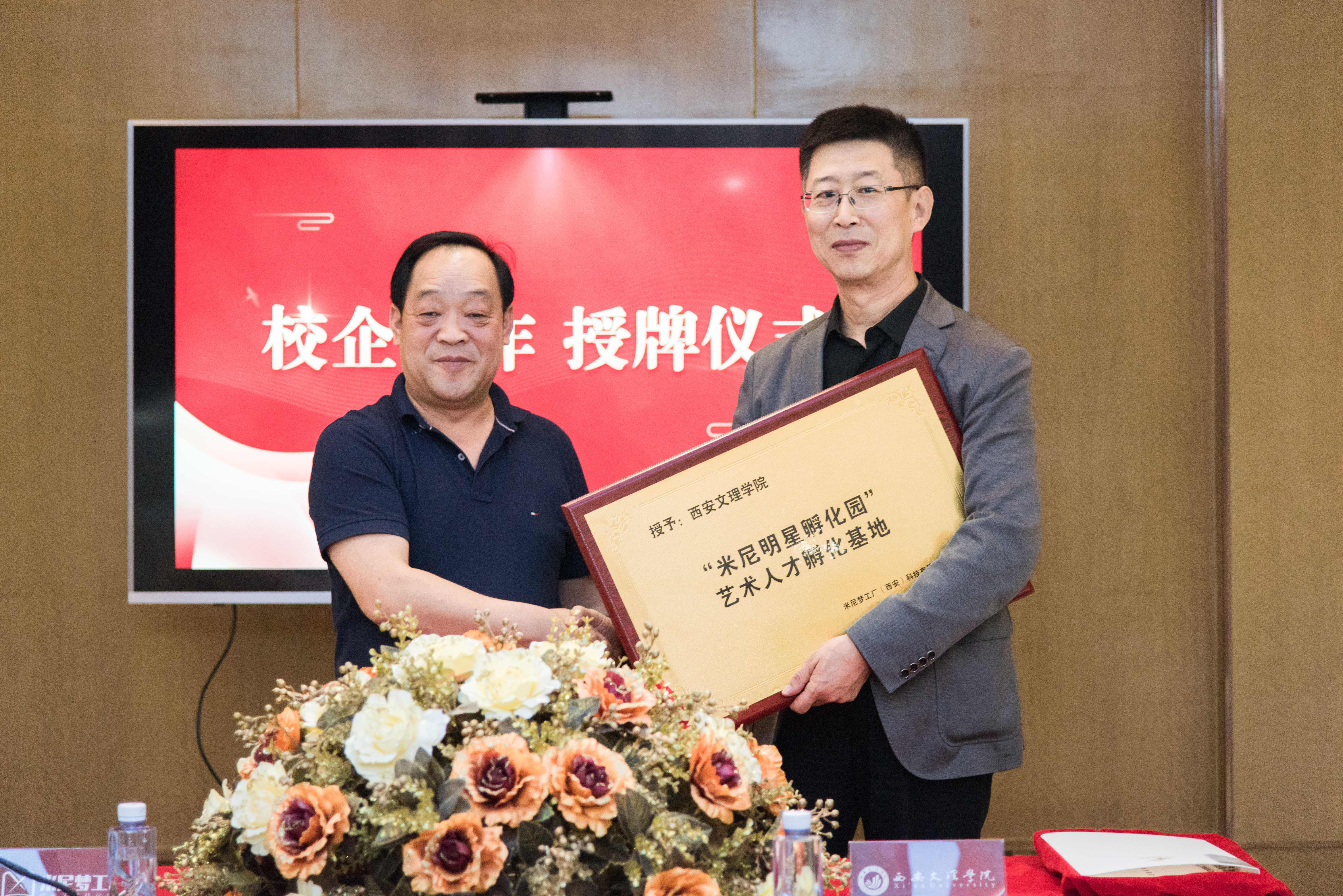文学院院长郝延军与米尼梦工厂(西安)科技有限公司董事长黄涛分别就艺术教育校企合作发表意见,就双方如何发挥各自优势、资源互补,实现学校课堂化教育和网络平台推广及产业化应用探讨合作框架和可行性实施纲要。双方最终签署《战略合作协议书》,互授牌匾,“米尼明星孵化园-西安九游老哥J9俱乐部官网学院艺术人才孵化基地”正式落成。