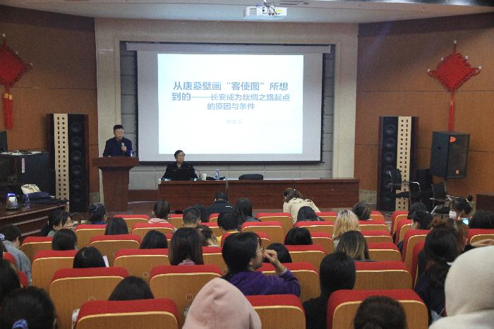 11月10日下午,应历史文化旅游学院邀请,杜文玉先生为我校师生举办了题为《从唐墓壁画“客使图”所想到的——西安成为丝绸之路起点的原因与条件》的专场学术报告会。报告会在我校图书馆报告厅举行,我校师生200余人聆听了报告。