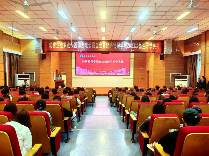 9月20日下午,经济管理学院2023级新生开学典礼在A区报告厅举行,学院特邀优秀企业家——荣华控股企业集团党委书记、董事长崔荣华为新生做首场励志成长报告,开启大学生活新篇章。招就处处长杨姗姗、学生工作处处长郑旻、经济管理学院领导班子全体成员、各系主任、教授及教师代表、全体辅导员及2023级全体新生参加。会议由学院党总支副书记朱芳芳主持。