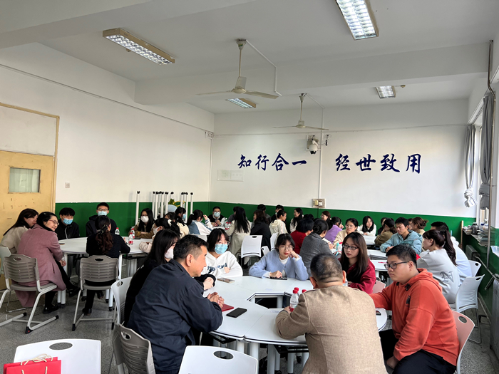 校内外导师分组进行面对面交流。校外导师对养老专业前景、目前企业状况、岗位设置等进行介绍,同时为学生答疑解惑;校内导师为学生介绍养老服务管理专业人才培养的相关情况。通过校内外导师的介绍交流,增加了学生对该专业的认识和了解,也提高了学生对该专业的认可度及学习热情。