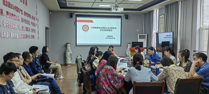 9月3日上午,师范学院在明德楼召开小学教育专业师范认证冲刺阶段工作安排部署会,学院班子成员、小学教育系全体教师及相关工作人员参加会议,会议由副院长李晶主持。