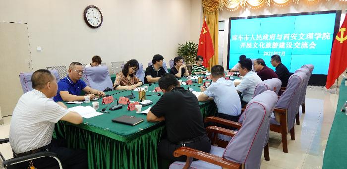 张天社说明受校领导委托来到库车市,感到新疆和库车市的旅游业发展势头很好,建立大学城创新港将对“文化润疆”产生巨大影响。库车是古龟兹国所在地,丝绸之路的重要节点,也是汉代西域都护府和唐代安西都护府所在地,库车市与西安和中原地区的互动关系密切,我们理应对库车市文化旅游大发展助一臂之力。刘倩倩介绍了我校总体情况和学院旅游管理国家级一流专业促进地方文旅发展的办学特色;朱晓晴说明可利用旅游管理专业的师资优势,在培训库车市旅游从业人员、对口援建库车旅游学校、建立实践教学基地等方面的开展合作;仇立慧、刘世栋就当地文化旅游品牌提升交流了看法。