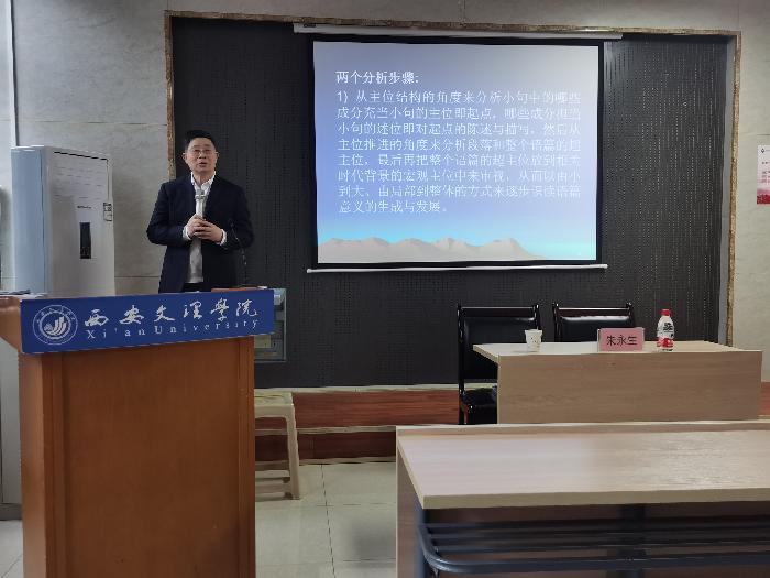 4月20日下午,复旦大学博士生导师朱永生教授为外国语学院师生做了题为“语义波理论及其在外语教学中的应用”的讲座。讲座由外国语学院院长韩红建主持,学院全体教师、学生代表参加了本次讲座。