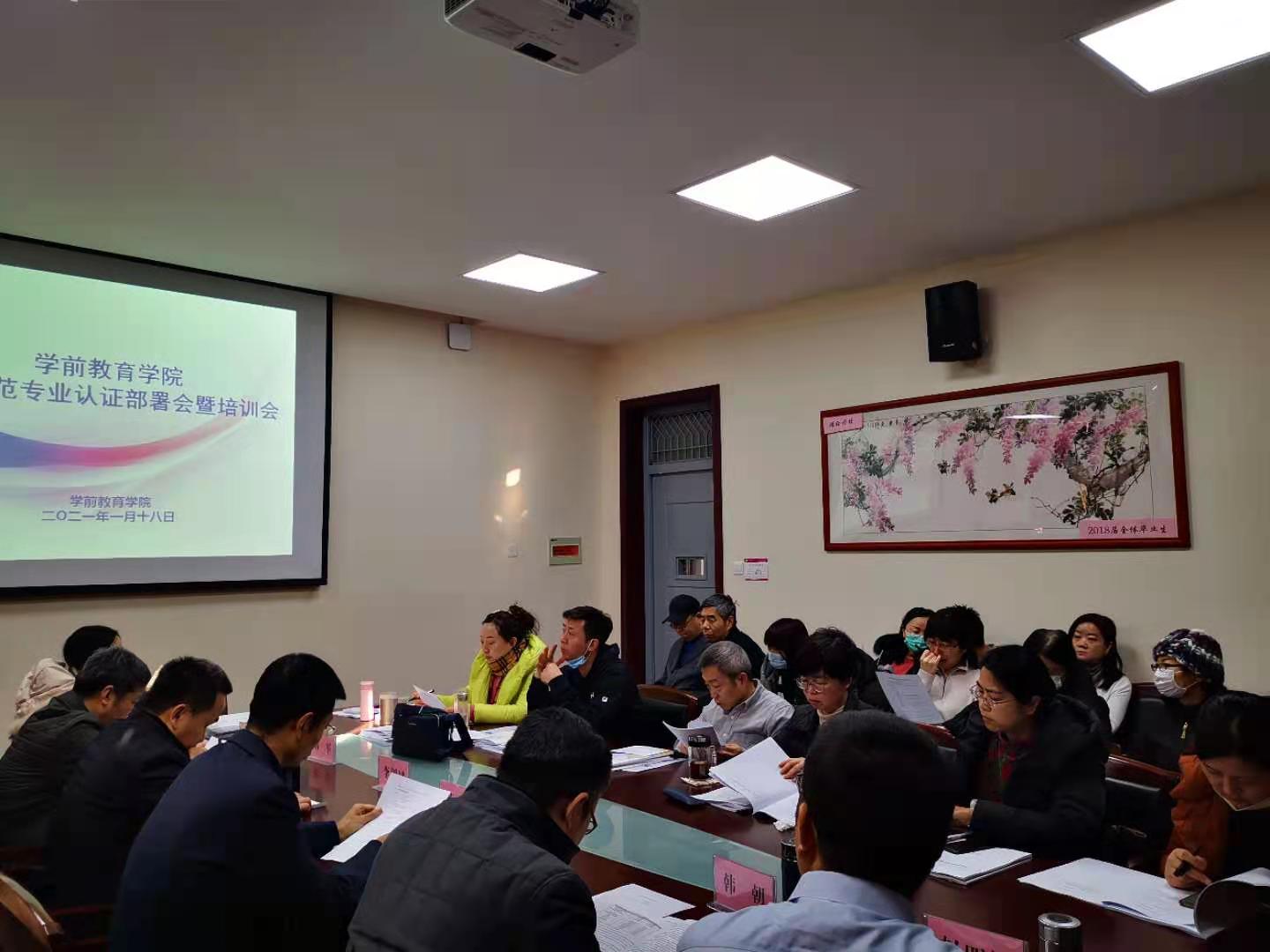 1月18日上午,学前教育学院召开师范专业认证寒假工作部署会暨培训会。本次会议特邀陕西师范大学教育学院学前教育系系主任李创斌作报告,院长蔡军,组织员韩军,副书记韩朝、副院长赵四鸿、副院长路娟及自评报告撰写各部分负责人和相关教师参加会议。会议由副院长路娟主持。