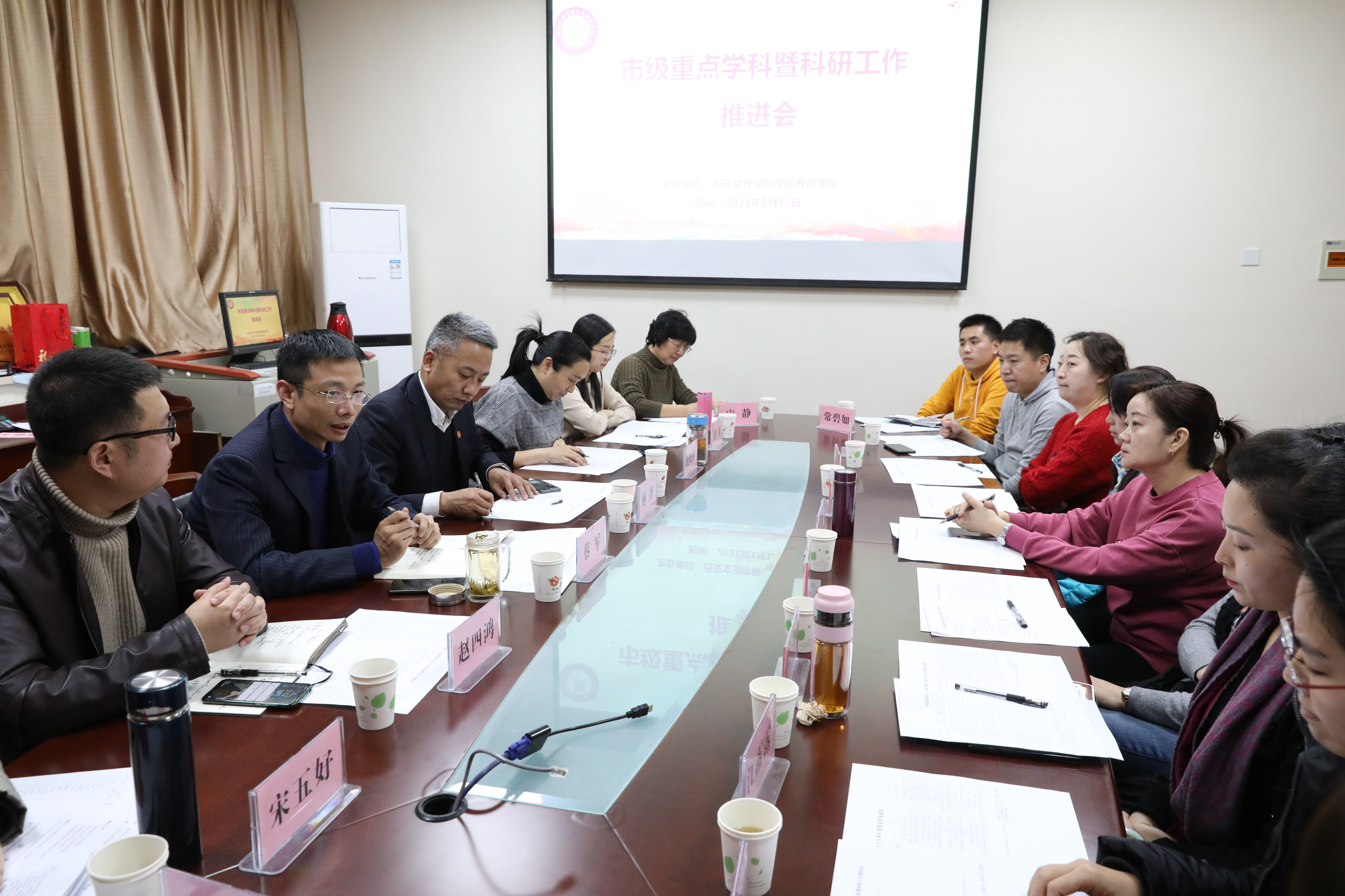 1月13日下午,学前教育学院召开市级重点学科暨科研工作推进会,校党委委员、宣传部部长、科研处处长鲍锋,学位与研究生处副处长钱晓萍及学前教育学院学科建设骨干教师团队教师19人参加了会议。