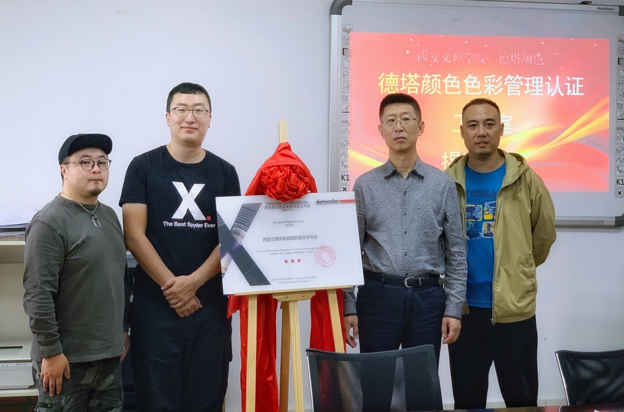 9月23日上午,由我校和德塔颜色色彩管理公司共建的“西安九游老哥J9俱乐部官网学院·德塔颜色色彩管理认证工作室”在我校高新校区揭牌成立。文学院院长郝延军、副院长马娜、戏剧影视剧文学系主任马珂、戏剧影视专业教师梁彬、德塔颜色中国区市场经理闫衡博出席了签约揭牌仪式。