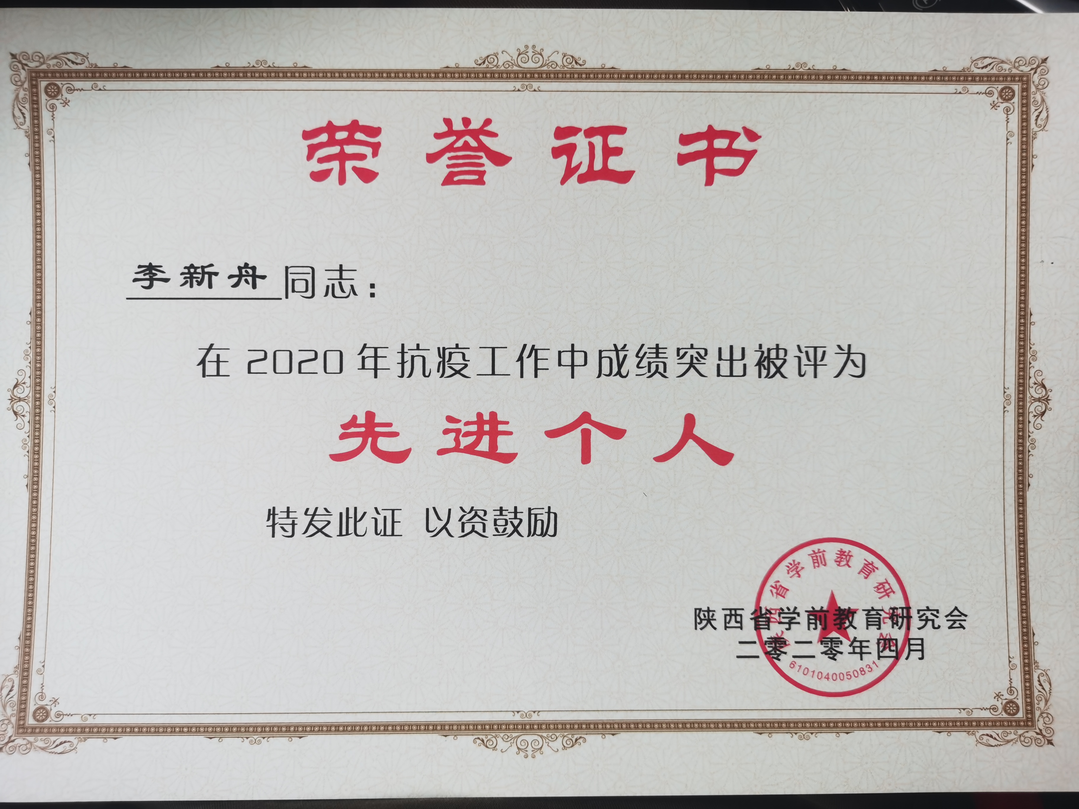 近日,陕西省学前教育研究会表彰了一批在疫情期间积极投入抗疫工作并作出突出贡献的先进个人,经过层次遴选,我院李新舟、路娟两位老师荣获“抗疫”先进个人称号。