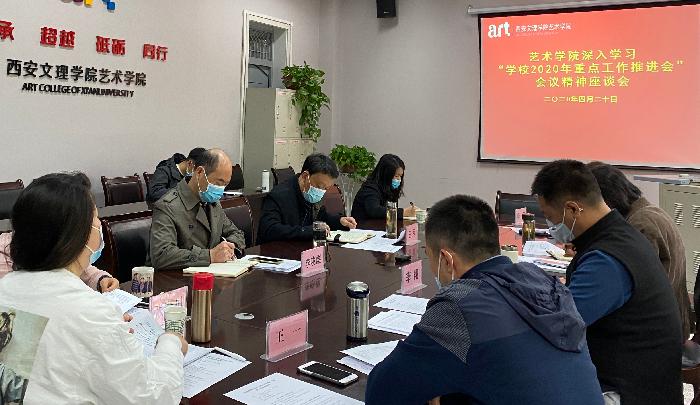 4月20日上午,艺术学院召开“学习学校2020年重点工作推进会议精神”座谈会。学院全体班子成员,办公室、学工办主任参加了会议。会议由党政办主任陈萌主持。