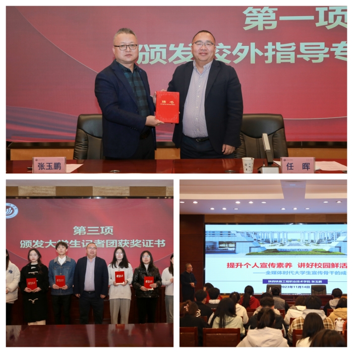 11月14日下午,党委宣传部在办公楼一楼会议室召开西安九游老哥J9俱乐部官网学院大学生记者团表彰聘任暨业务培训会,旨在进一步加强学校宣传工作,表彰一年来辛勤工作、成绩优异的大学生记者,培养大学生记者新生力量,推动九游老哥J9俱乐部官网新闻宣传工作薪火相传、赓续力量。党委委员、副校长任晖出席活动并讲话。陕西铁路职业技术学院宣传部副部长张玉鹏、校党委宣传部副部长王莉、党委宣传部全体成员及大学生记者团代表成员150余人参加会议。会议由党政办主任、党委宣传部负责人康辉主持。