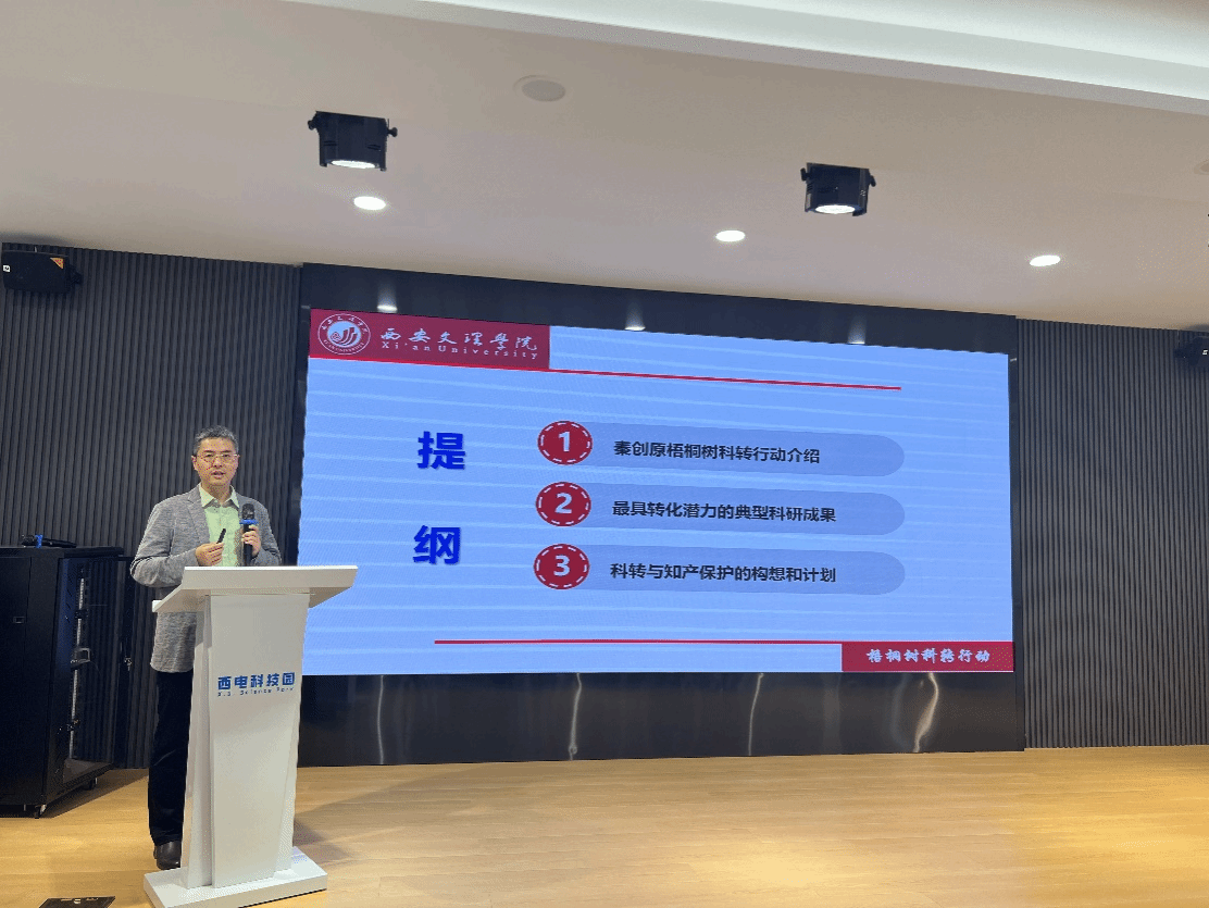会上,雷凯博士作了题为“校地协同精准对接,知产科转赋能雁塔”的主题报告,从“雁塔区秦创原梧桐树科转行动现阶段目标任务,九游老哥J9俱乐部官网学院最具转化潜力的优质科研成果,以及雁塔区科技成果转化与知识产权保护的工作计划和设想”三部分内容进行了系统阐述与详细汇报,重点介绍了我校的办学特色、科研平台、人才培养以及13项最具转化潜力的技术成果。我校优质的科研成果引起了与会单位的浓厚兴趣,并在会后纷纷与雷博士作进一步的交流和咨询。