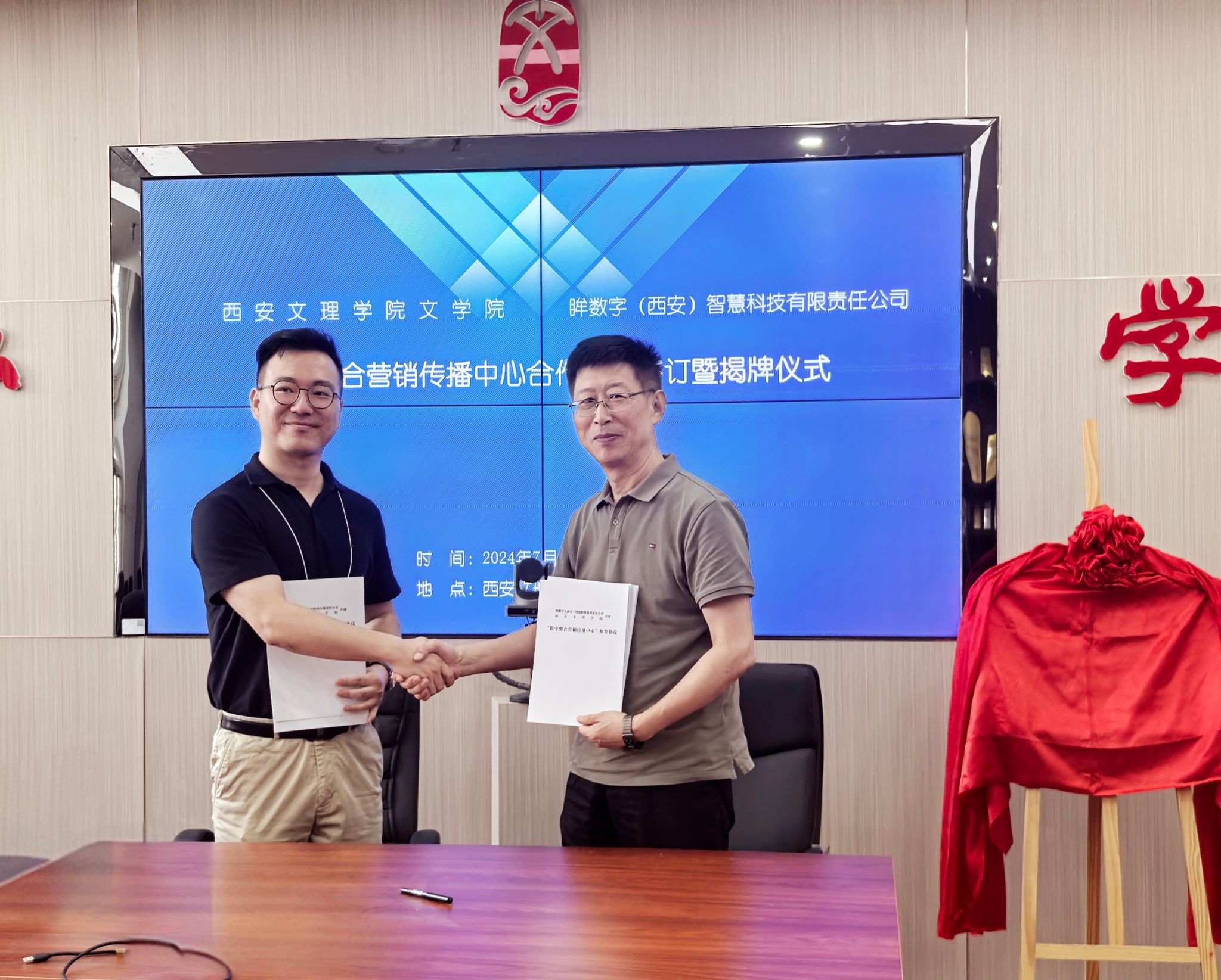 文学院与眸数字(西安)智慧科技有限责任公司数字整合营销传播中心合作协议签订暨揭牌仪式