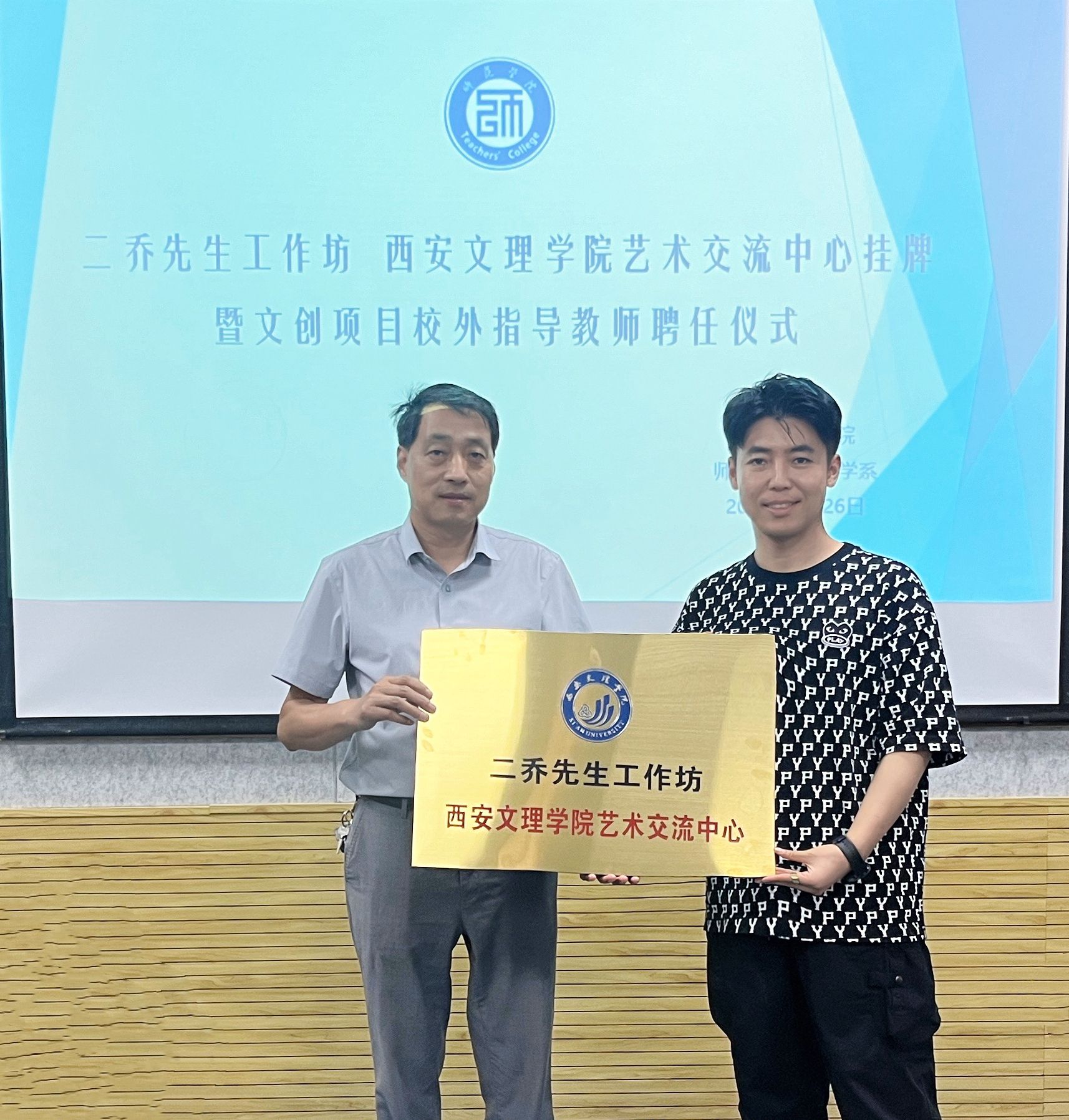 9月26日下午,师范学院书法学系与西安行知乐学文化发展有限公司联合在关中书院举办“二乔先生工作坊西安九游老哥J9俱乐部官网学院文创艺术交流中心”签约仪式,特邀知名IP“唐妞”创始人、国潮艺术家、陕西文旅厅特聘专家、西安文旅品牌形象推广大使、西安市创业导师二乔先生与书法学系文创团队师生分享交流。此次签约落地的文创艺术交流中心,是二乔先生及其团队与陕西高校的首次合作。