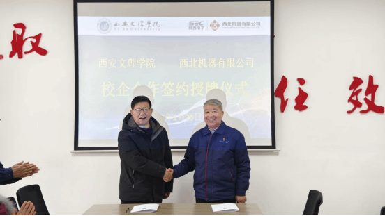 为深入贯彻落实教育部关于“访企拓岗促就业”专项行动要求,进一步深化校企合作,加强产教融合,拓宽就业渠道,提高人才培养质量。1月20日上午,我校与西北机器有限公司大学生实习基地协议签约暨揭牌仪式在西北机器有限公司宝鸡蔡家坡西北机器有限公司生产基地举行,教务处副处长张云哲,机械与材料工程学院院长张运良、副院长刘凌、机械系主任何斌锋一行4人参加。