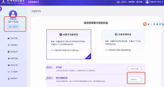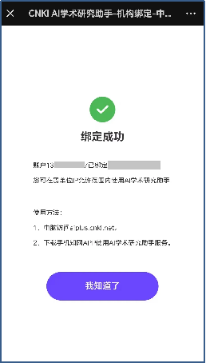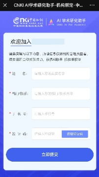 点击机构关联,选择方式二输入机构账号xawlxyAI以及个人信息提交,即可关联成功;也可以微信扫码登录个人账号,填写姓名、部门/院系、手机号相关字段,点击“立即提交”,绑定成功后界面会显示“绑定成功”。