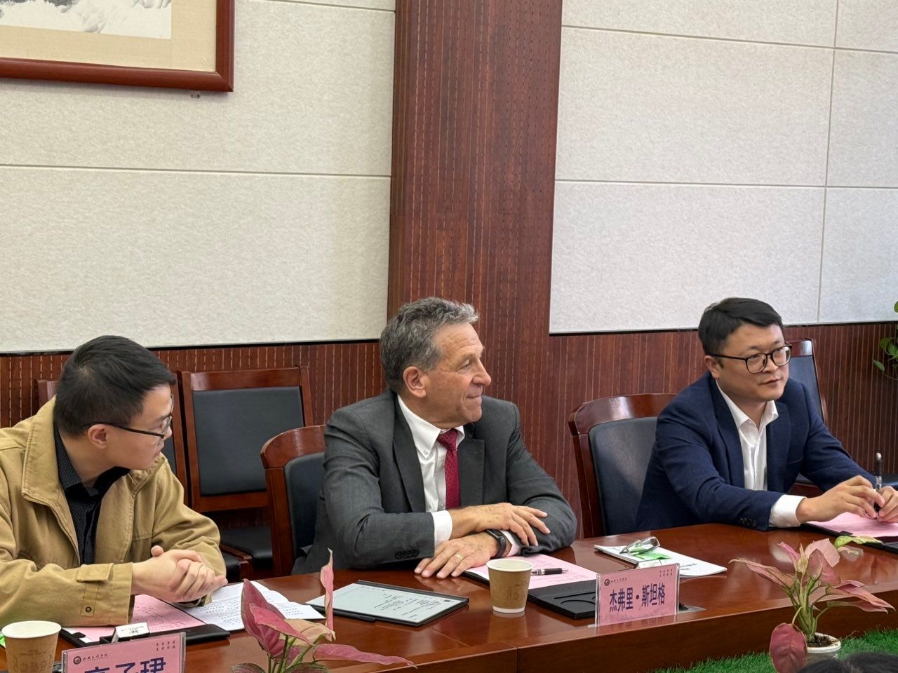 10月22日下午,新西兰梅西大学商学院副院长、国际处处长Jeffrey Stangl教授一行访问我校。学校教务处、国际交流处、经济与管理学院、学前教育学院、生物与环境工程学院相关负责人参加座谈。会议由国际交流处副处长边培莹主持。