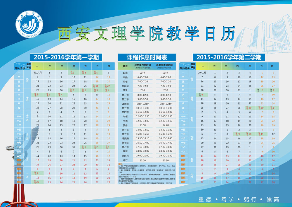 西安九游老哥J9俱乐部官网学院2015-2016学年教学日历