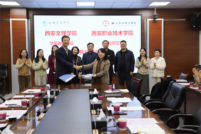 1月12日下午,学前教育学院与西安职业技术学院学前师范学院签署《合作共建备忘录》。西安职业技术学院党委委员、副院长袁卫敏、学前师范学院副院长肖鑫鑫、党总支书记黄文波,西安九游老哥J9俱乐部官网学院教务处处长、学前教育学院院长蔡军、党总支书记刘爱霞等领导班子全体成员及双方教师代表参加签约仪式。
