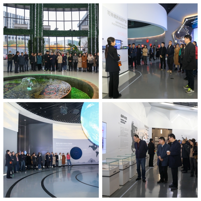 下午,调研观摩人员走进隆基绿能股份有限公司进行参观交流。隆基绿能公司相关负责人带领参观了智慧能源展览馆,从隆基绿能的创建背景、发展历史、企业责任、产业架构、生产工艺、市场发展以及战略愿景等维度进行详细讲解,并结合专业知识与发展进行了互动交流。