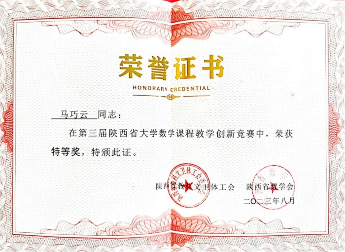 我校教师在陕西省大学数学课程教学创新竞赛中喜获特等奖